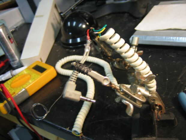 Este mismo cable de teléfono a los cables de tierra de la almohadilla de la soldadura.