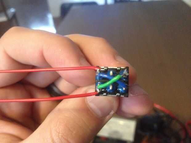 Soldar todo junto y dejar un montón de alambre de su lleva a alcanzar el motor, usted puede cortar corto más tarde después de haber montado el conmutador en la posición final.