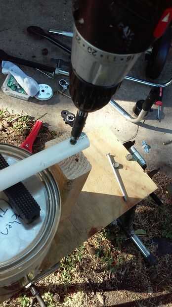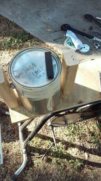 Encuentra en la vieja lata de pintura en mi armario y lo colocó en la plataforma. Usé otro trozo de PVC como un asimiento abajo sobre la parte superior de la lata.
