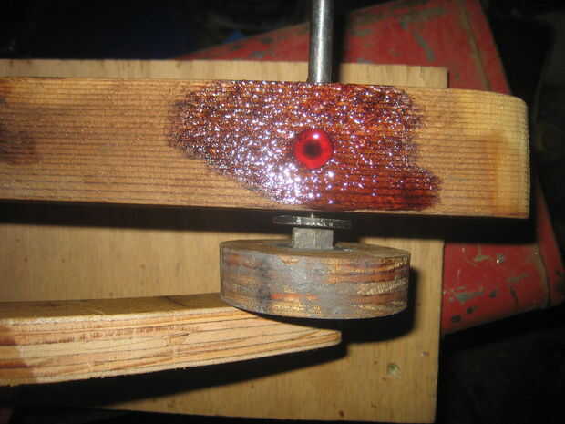 Para terminar, hacer una biela. cortar un trozo de madera para encajar en el oído en el soporte y la manivela. La mía es curva porque, como salió, un derecho uno interfería ligeramente. Agujeros esto y conectado conectado con un tornillo en cada extremo. Probablemente esto tendrá que ser mejorado más adelante.