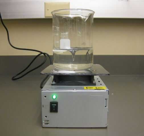 Sumergir la barra de imán de agitación antes de encender el agitador. Asegúrese de que la barra de agitación se encuentra en el centro de los dos imanes conectados al ventilador. Siempre tienen algo de agua en el vaso. La barra de agitación de imán puede agrietar la pared de vidrio del vaso Si huye de la posición del centro de repente en un vaso de precipitación vacío.