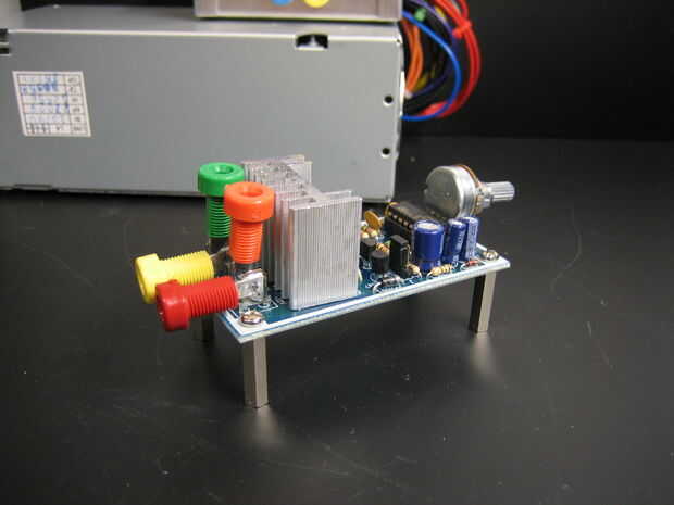 Desde el controlador del motor viene montado, no hay mucho que hacer con él. Puse sobre separadores y soldar jacks banana a las terminales en el extremo opuesto el potenciómetro. Los conectores de banana verde y rojo alimentación al controlador y el amarillo y naranja al ventilador. Los conectores se colocan gracioso, es decir, alternan a 90 grados entre sí. Esto es porque no caben todos en el mismo ángulo así que improvisé un poco.