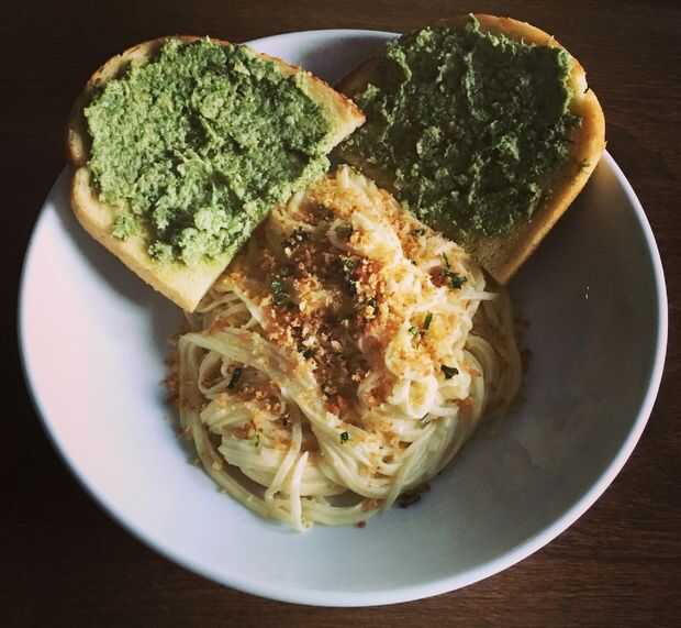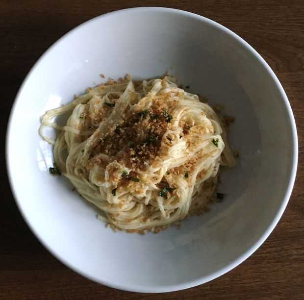Aglio olio de e es una de mis pastas favoritas, salsa de la cocina casi al mismo tiempo que sea necesario para cocinar la pasta, así que es fácil para una noche de la semana, abundante que suficiente para una comida de fin de semana y hace la perfecta noche de bocado, también. Esta versión de rampa es probablemente mi favorito, tal vez porque sé que la temporada de rampa es corto. Yo inicio mi olio de e aglio de rampa con algunas migas de rampa lemony, que añaden brillo del limón, otro pequeño golpe de sabor de hojas de rampa y panko para añadir cierta textura a la pasta.