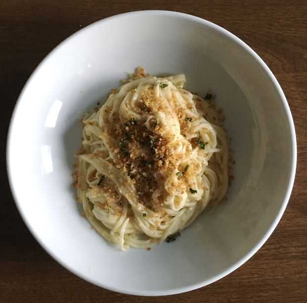 Devolver pasta a la olla y añadir la mezcla de rampa, 1/2 taza de agua de la pasta reservada y 1 cucharada restante de aceite de oliva virgen extra, sorteo para combinar, si la pasta se ve seca, añaden agua de pasta restante. Sazonar con sal y una pimienta al gusto. Para servir, espolvorear con panko relleno y queso parmesano, si usa. Añadir pimientos extra picados, si lo desea. Mangia y disfrutar!