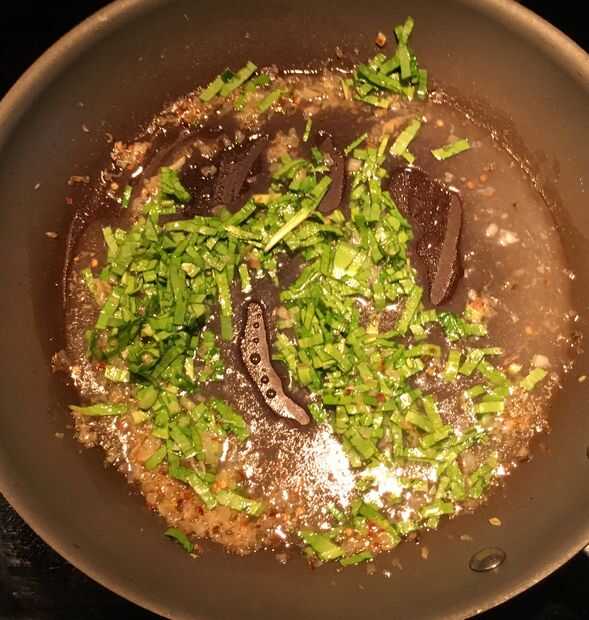 Agregar rampa deja al sartén y cocine hasta que ablande un poco, aproximadamente 1 minuto.