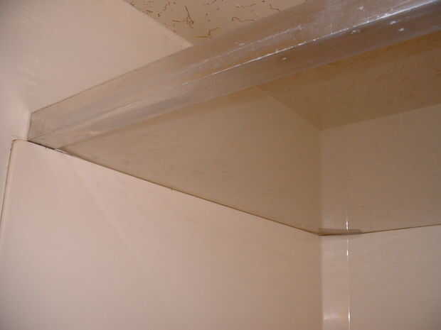 Ya que todas las superficies dentro de la caja serán muy húmedos durante la ducha, no quiero tener ningún tablón sin protección o de yeso dentro de la caja. Normalmente esto significa que la tapa de plexiglás debe ir a la derecha en la parte superior de los azulejos existentes o de fibra de vidrio, lo suficientemente bajo que cualquier tablón está por encima de la tapa. Si eso significa que a golpes la cabeza, consulte el paso 23 para algunas otras opciones.