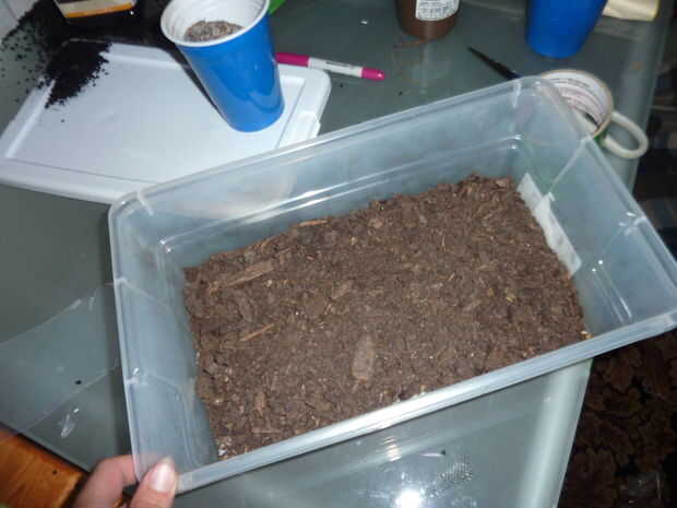 La tercera capa es el suelo. Usted estará poniendo las plantas poco tiempo, así que no tienes que añadir demasiado hasta después de que el próximo paso.