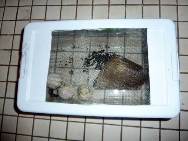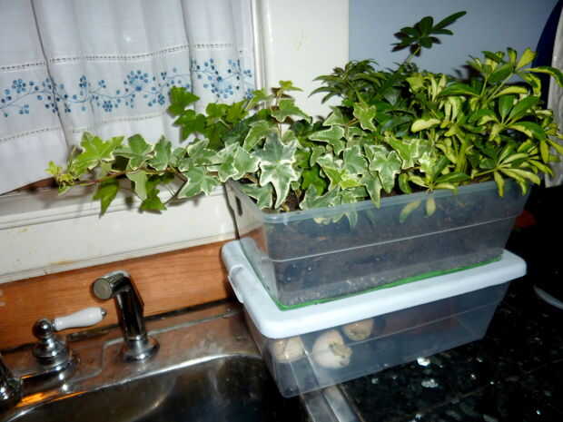 Ahora puede utilizar el sistema de compost. La tapa de la malla va en la parte superior de un envase. Este recipiente se coloca debajo el recipiente jardinera. Eventualmente iré añadiendo velcro en la tapa por lo que permanece unido a la parte inferior de la maceta. Iré también añadiendo mangos más fácilmente levantar el plantador.