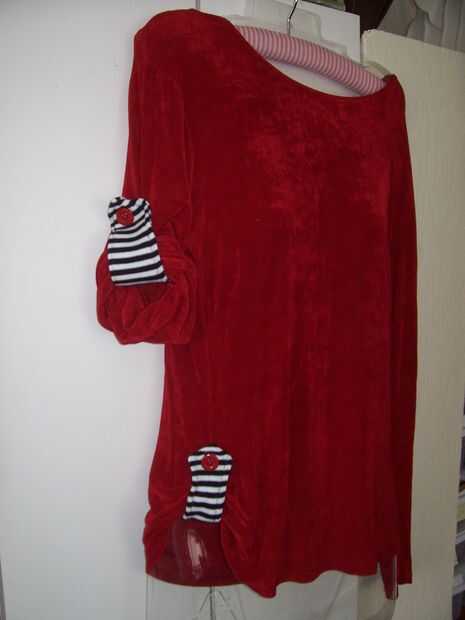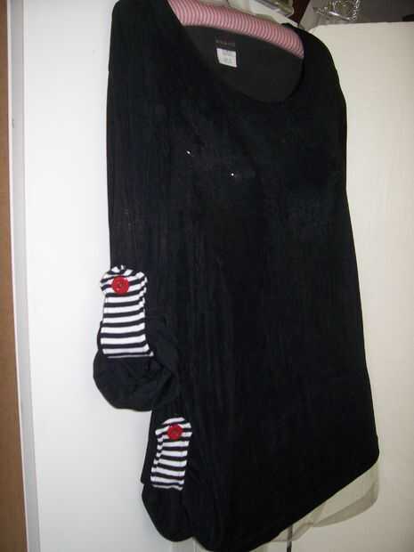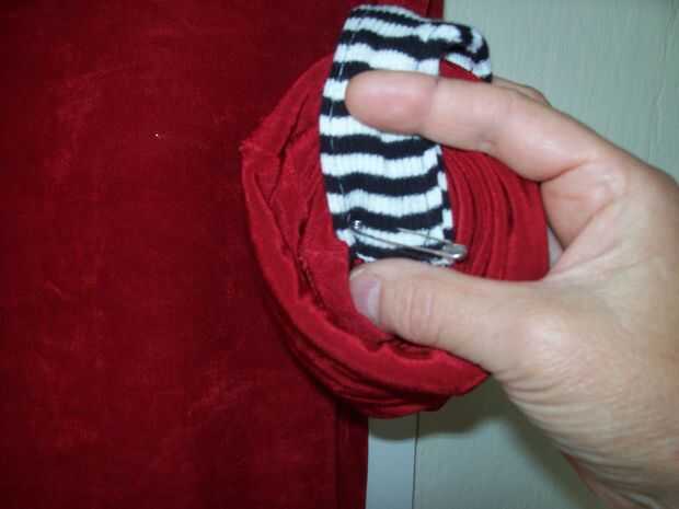 * Usando un gran perno de seguridad, perno de la tapeta en el interior de la manga y a través del frente de la abertura, luego hacia el interior de la manga para que puedan cerrar el perno de seguridad. Repita para la otra manga. También puede recoger la parte inferior de la camiseta para un look diferente.