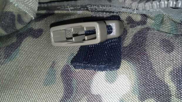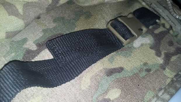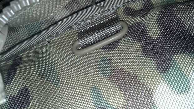 Ahora es el momento para crear una correa dentro de la bolsa. Puede o no puede haber notado que dentro de la mochila multi-cam hay dos ojales para que sea fácil atar una correa. Os adjunto mi cinturón con un juego extra de las hebillas pequeñas que vinieron con el bolso y la correa de mi bolso de silla camping plegable. Usar un encendedor para quemar los extremos cortados de la correa para que no debilite. Recuerde que usted debe coser la correa juntos después de adjuntarlos para el ojete (esto debe ir sin decirlo pero no me imaginé que un recordatorio es útil). Cuando las correas, dobles o triples de costura coser.