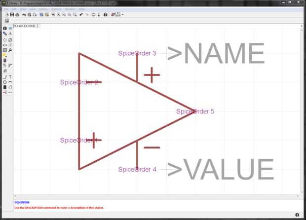 Ahora podemos editar el símbolo, sin embargo nos gusta. Personalmente me gustaría quitar el SpiceOrder y cambiar el nombre de los pines por lo que me hacen sentido pero esto es opcional.