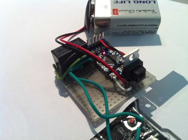 El voltaje de la bobina es lo que crea un cortocircuito en los contactos del relé. Conecte dos cables de la Arduino a la bobina del relé: uno de la tierra del Arduino a la bobina del relé; otro de Arduino Pin 2 a la bobina del relé. G5SB-14 no es sensible a la polaridad. Probar el relé mediante el envío de altas y bajas a Pin 2 con estas líneas encontradas el dibujo: digitalWrite (relayTrigger, HIGH); relé debe hacer clic en. Intente digitalWrite (relayTrigger, bajo); relé debe hacer clic en Apagar.