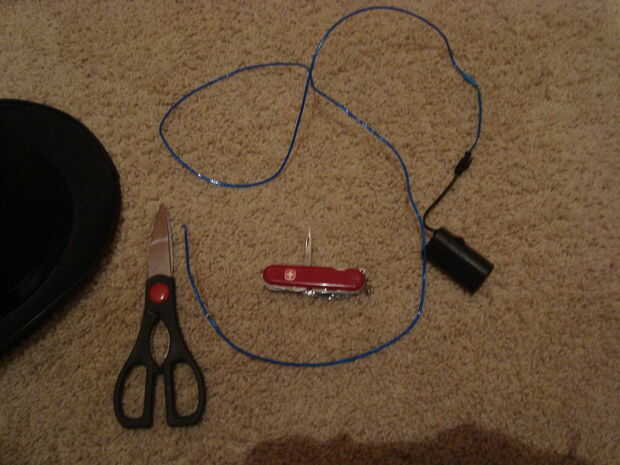 Para colocar la batería en el interior del sombrero, usé un trozo de palillo en velcro. (El lado del gancho)