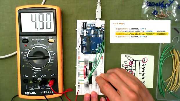 Ahora conecte nuestro reloj, cierre y datos líneas otra vez igual como lo hicimos antes y hacer un pequeño cambio en nuestro programa de Arduino para acomodar para el segundo turno registro (ver imagen).