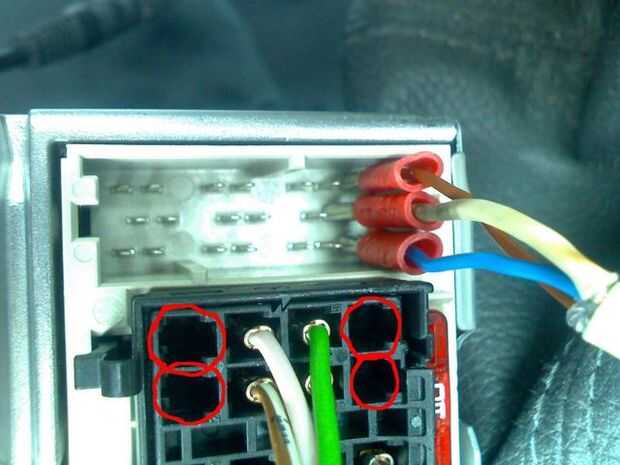 Las conexiones están marcadas con rojo - estos son los altavoces L y R traseros. Yo estaba casi seguro que estos son potencia, pero no utilizados y decidí probar. Como la radio es costosa y no quiero ver el majic humo saliendo de ella tapó en estos sin conectores un altavoz pequeño de 5W que demostró que no hay sonido que sale.