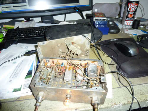 En mi caso, estoy usando la radio de mi carro de Ford 66 y usando la entrada para escuchar música desde un reproductor de mp3. La radio es aproximadamente tan simple como puede ser: Soy único, mono salida pero esto se puede hacer para estéreo fácilmente (más fácilmente de hecho!).