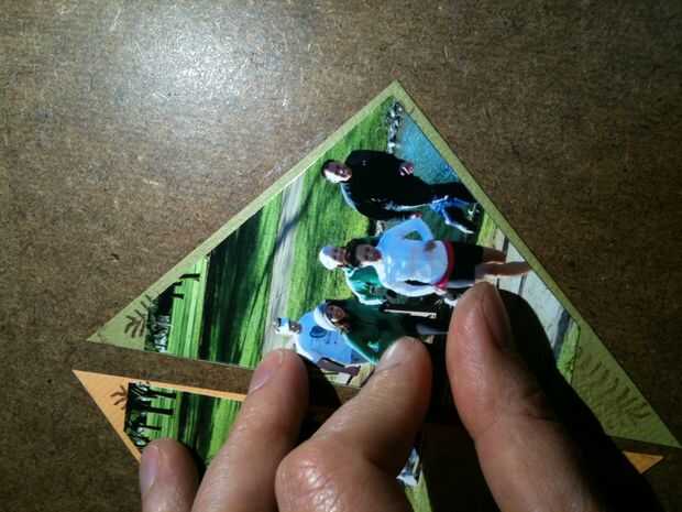 Puede pegar sus fotos directamente al álbum o a una plaza decorativa o triángulo. Para este instructable, había pegado las fotos a los papeles decorativos, luego había añadido al álbum. Asegúrese de obtener una buena cobertura con tu pegamento o adhesivo. Repetir este proceso con todas las fotos que quieres añadir a tu álbum.