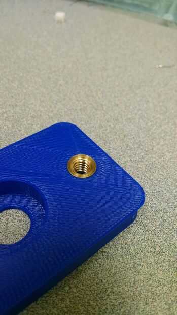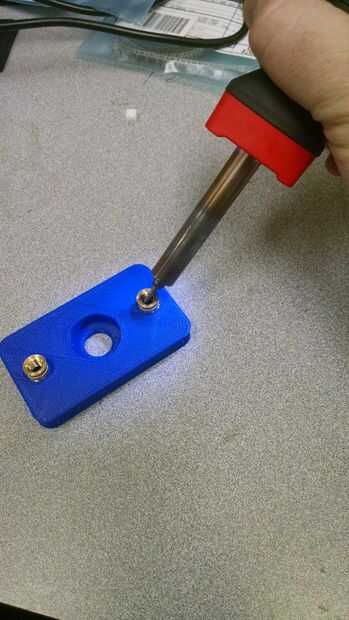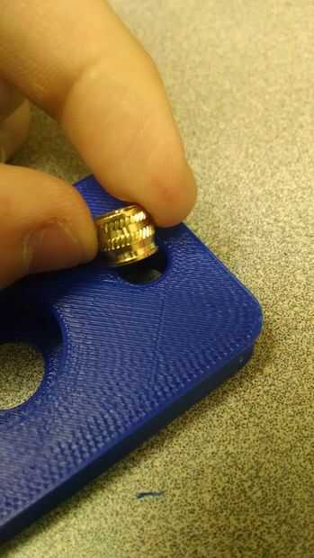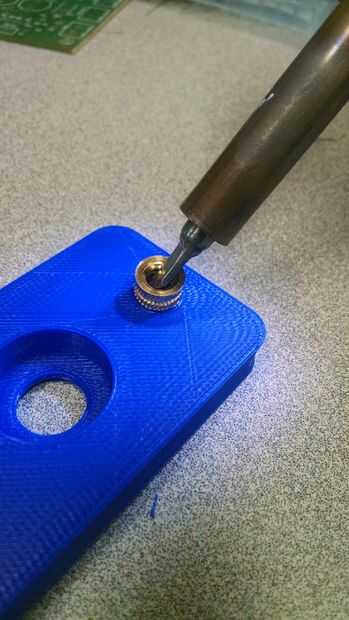 4. a medida que empuja, el inserto se hundirá lentamente en el plástico. Usted puede tener a mover el soldador hacia adelante y hacia atrás para enderezar el inserto.
