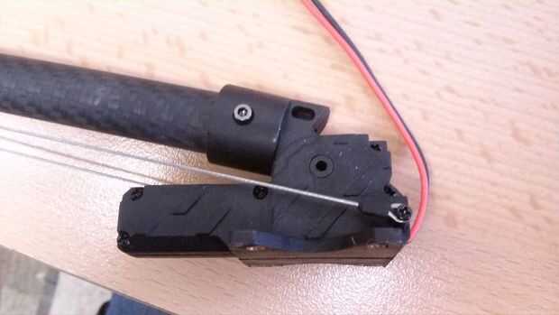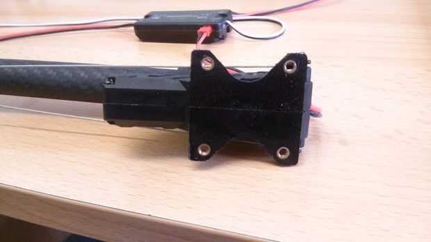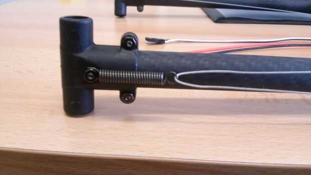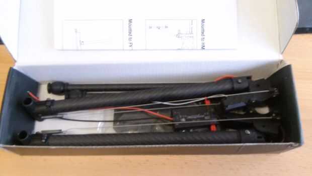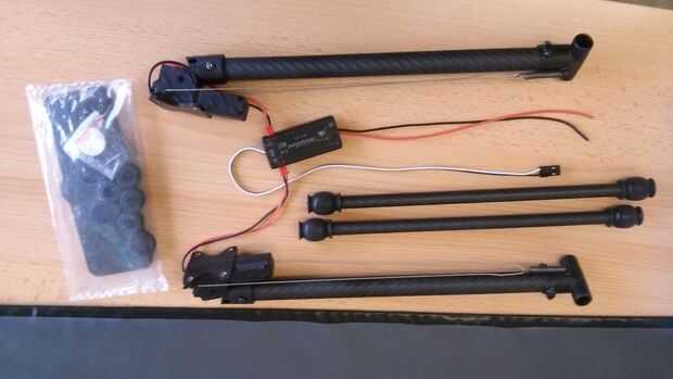 Todas las piezas de fibra de carbono tienen un acabado agradable, sentir realmente bien, sin aristas o errores de producción. el controlador está encerrado en una pequeña caja de plástico con marcas blancas, de ambos lados ya hay cables de dos hilos servo (cada pata se mueve por un servo), los lados más cortos anfitrión un par de cables negro y rojo para el suministro de energía, el otro lado tiene un par de cables blanco y negro para conectar a un canal libre del receptor o su controlador de vuelo. Los cables de servo son desmontables, con un conector JST de estilo batería, así que hace más fácil de instalar, reparar o cambiar piezas. Eso es todo, es realmente simple y fácil de entender e instalar.