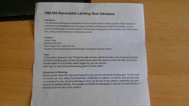 El tren de aterrizaje llegó por correo certificado, envío fue muy rápido, de Países Bajos, probablemente de un almacén de EU de Banggood. El costo del tren de aterrizaje es de alrededor de 45 € (48 dólares), con envío gratis en todo el mundo. Déjenme decirles vale la pena cada centavo...