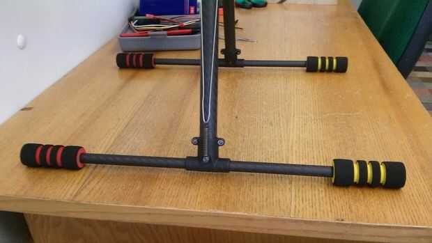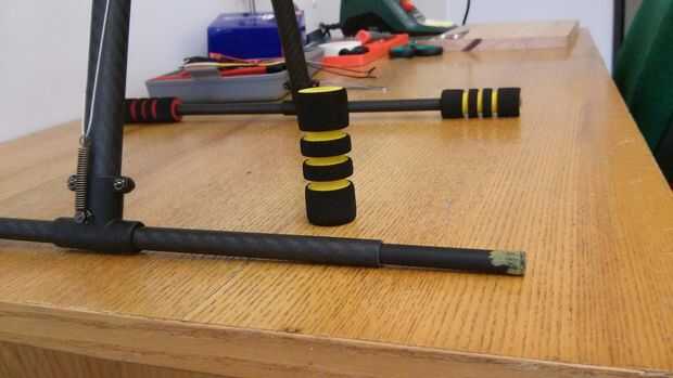 Después Juntándolo todo, decidí hacer los patines de aterrizaje un poco más, para hacer mi quad un poco más estable en el suelo. Utiliza los brazos de fibra de carbono original (tubos) de HK X650F marco aterrizaje y los puso dentro y a través de los nuevos tubos de resbalón de aterrizaje. Pasan a ser perfecto. He utilizado los extremos del tubo esponjoso original y fijo que en lugar con una gota de pegamento. Se puede ver en las dos últimas fotos.