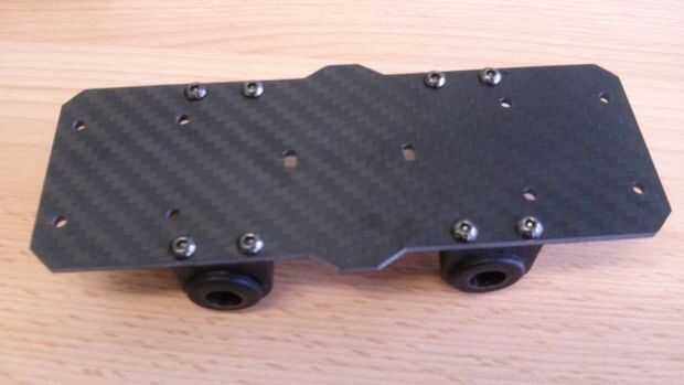 Como voy a instalarlo en mi marco de HK X650F, utilizo la opción de utilizar la placa de montaje con amortiguadores de goma e instalar en los dos tubos de fibra de carbono utilizados para la fijación de soporte de la batería y cardán, por debajo de mi plato de fondo. Podría intentar de instalarlo directamente al marco, pero necesitaría hacer nuevo agujero en la placa inferior y probablemente interfieren con el diseño de plegado de los brazos del motor, así que elegí el camino más simple e ir con la placa de montaje.