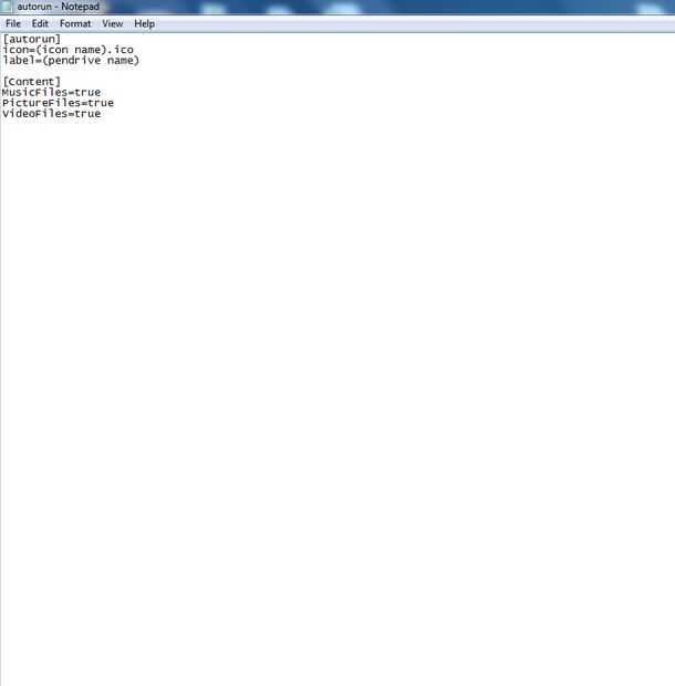 No se olvide de reemplazar el nombre del icono con su nombre de icono y el nombre del pendrive con lo que quieres nombrar tu pendrive/hardrive. Recuerde guardar la nota como Autorun.inf. lugar que en el pendrive/hardrive con el icono.