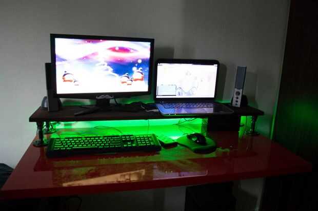 He añadido tiras de LEDs debajo de la superficie sólo por diversión. Sólo cortar la tira de LED y pegarlo en la parte inferior de la plataforma en la parte posterior. Conecte con el resto de las piezas del kit.