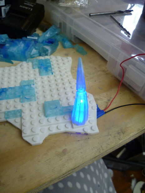 Temporalmente puede colocar el LED en su artículo donde que ha perforado los agujeros y luz hasta asegurarse de que está recibiendo el efecto correcto usted quiso. La foto 's por encima de mostrar los procesos que he estado a través de hasta ahora en una de las posiciones en mi proyecto de Lego.