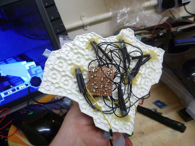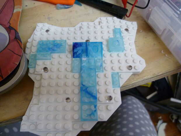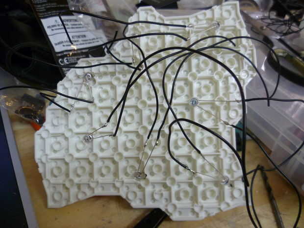 Al soldar el circuito a la Junta de Proto que desea (si tiene uno) Utilice de nuevo cosas para mantener en su lugar cuando estás soldadura para que sea tan fácil como sea posible. Tengo que appologise por mi ejemplo en la imagen, fue muy apresurado. Pero espero que le da la idea de lo que estás buscando para lograr. Usé algunos pegamento debajo de cada uno de los LED para darles un poco más estabilidad como habría presión sobre ellos, en este caso cuando alguien intenta presionar un bloque de Lego en ella.