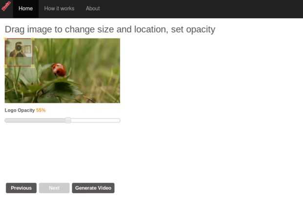Pulse "Siguiente", ahora se puede ver la sobreimpresión de logotipo en la parte superior la vista previa de vídeo.