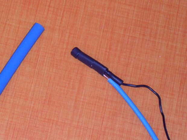 Únete el micrófono y el encogimiento del calor para unir todo composant...