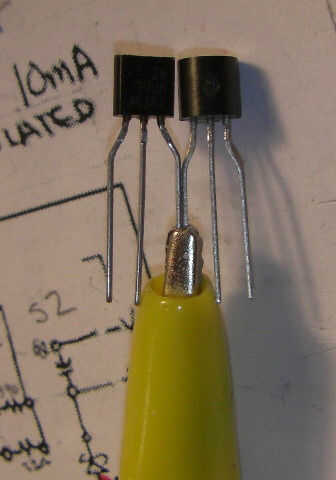 Comienzo sosteniendo el cable 'C' del 2N3906 al cable de 'B' de la FPN965 y los juntas de soldadura.