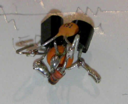 Cuando se han unido los 2 condensadores y el diodo a los transistores, se hace en esta sección.