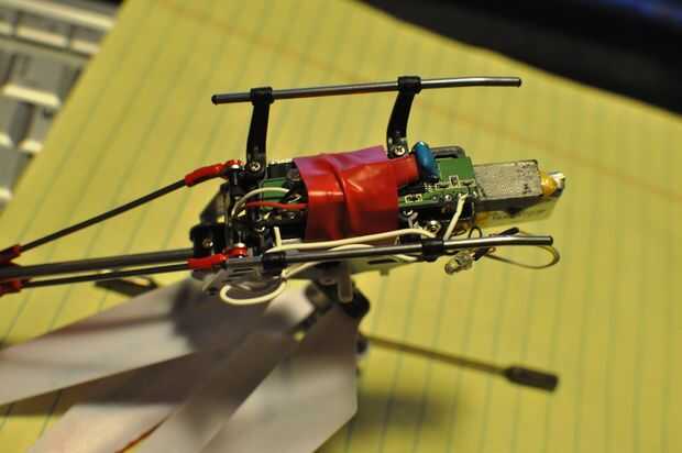 La principal desventaja de estos dispositivos es que utilizan infrarrojos (IR) a control remoto en lugar de radio, esta es la misma tecnología utilizada en controles remotos de televisión. Funciona al pulsar una luz LED de infrarrojos, que es invisible al ojo humano, y el dispositivo de control detecta los pulsos mediante un fototransistor IR, que cambia su resistencia cuando golpeó con luz IR. Porque estos dispositivos dependen de la luz, necesitan una clara línea de vista entre el LED transmisor y el receptor. Puesto que se trata de un dispositivo de vuelo, si cualquier cosa, incluso el cuerpo del helicóptero, bloquea el camino por un momento, se cuelga a la tierra. También es muy susceptible a la interferencia. La luz del sol está llena de luz IR, que significa que los helicópteros no pueden volar al aire libre.