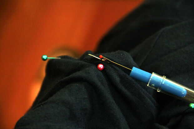 Pick aparte la costura en los lugares que has marcado con alfileres, lo suficiente que se ajuste a tus piezas de cinta en.