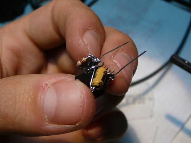 Esta técnica de construcción de circuitos se llama "cableado discreto", o más frecuentemente, la "técnica de bicho muerto". Para circuitos simples como éste, puede ser utilizado sin preocupación, pero algo mucho más grande, y definitivamente deben usar una placa de circuito.