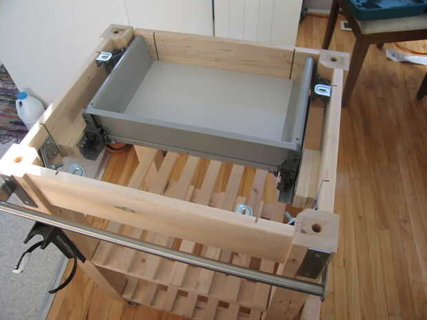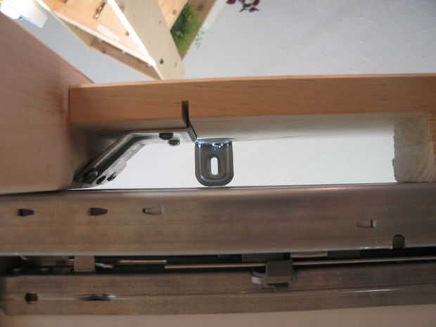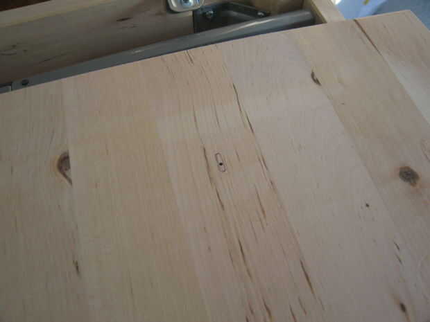 Se agregó la manija y los tornillos fueron hundidos en la madera en la parte posterior de la cara del cajón para que no conseguiría de la manera.