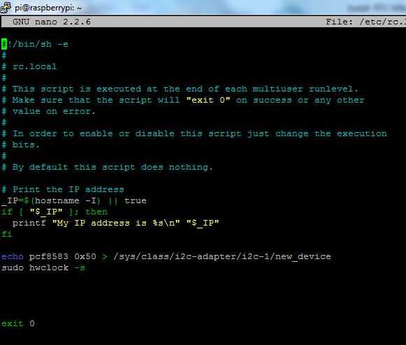 Entonces usted querrá crear el PCF8583 creación de dispositivos en el arranque, edite /etc/rc.local ejecutando