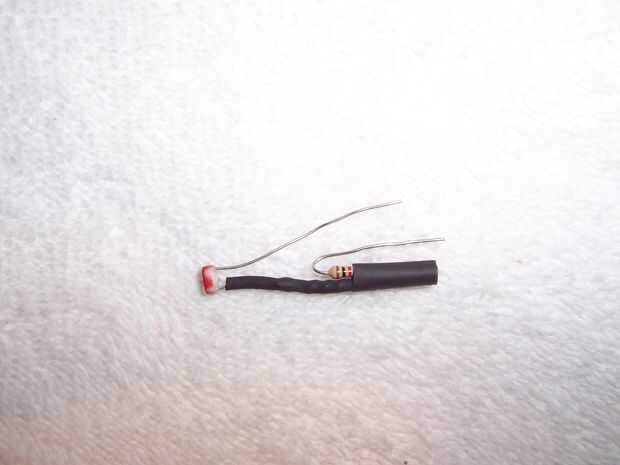 Añadir más tubería de contracción para que sea tan limpio como sea posible.  Utilice una pistola de calor a la tubería del encogimiento cuando está en lugar.  Ahora hay tres cables.  Uno para un lado de la fotorresistencia por sí mismo (a 5V), uno de los cables de la resistencia propia (GND) y un cable que incluye la resistencia de 1K y la fotorresistencia (en analógico-0).