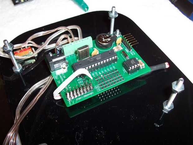 Doble el cable de cinta alrededor de la mesa y colocar la fotorresistencia en la parte superior de la DOTKLOK.  Asegúrese de que los conductores correctos se arreglan en los terminales correctos.