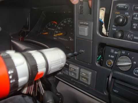En primer lugar permite empezar con el interruptor. Como la mayoría de ustedes no marque cada caja opción disponible en el SUV, cuando lo conseguí, así que tengo un práctico espacio en blanco en mi botón de la escotilla trasera que puedo montar el interruptor. Marca el centro y una 1/4 broca para hacer el agujero. No recomiendo la perforación mientras que todavía está conectado, sólo estaba tratando de hacerla más clara. En la parte trasera de la plaza en blanco era un plástico moldeado para cualquier botón no comprar que conseguía lo usé sólo pinzas a presión apagado.