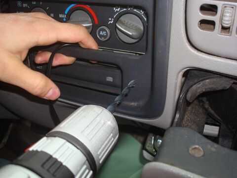 Después de su lugar es todos preparados simplemente tornillo de fijación Arandela, arandela y tuerca firmemente entonces se mueven en el restante cable mini jack. Ahora sólo perfore un agujero donde parece más conveniente, (tuve que usar un 5/8" para éste) lo hice en el otro lado del reproductor de CD por lo que no cuelgan cerca de los pedales y tire el cable nuevo a través de.