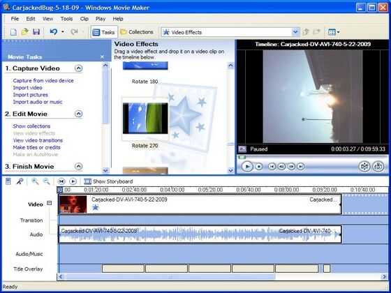 Paso 2: En la sección de efectos de vídeo de vista, encontrar rotar 270