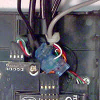 Reutilizar un antiguo interno CD cable de audio para enchufar el conector de audio de tres clavijas. El cable tenía un conector de cuatro pines y con un poco de trabajo he podido volver a configurar el conector en los tres pernos que necesitaba. Es un ajuste apretado, pero decidí aprovechar las líneas dentro del tablero de mandos medios. Tiene una estructura abierta que permite pero tuvo mucha paciencia para meter los golpecitos alrededor de los cables correctos, inserte los cables desde el cable de audio con conector modificado y aprete los grifos.