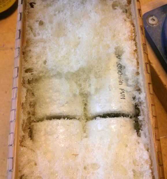 La parte superior de la batería de bambú está llena sobre todo con el pegamento, por lo que se puede cortar abierto bastante segura sin golpear cualquiera de las celdas reales. Tenga mucho cuidado al cortar con una sierra como cualquier daño a la célula real puede causar un corto circuito, que es muy peligroso con células LiFePO4 actuales alta. Esta batería puede fácilmente conductor sobre 80A de la corriente en un circuito corto, así que cuidado de no cortar más allá del espacio vacío de la parte superior. Empiezo mi corte con sobre un 5mm de profundidad corte a lo largo de la articulación en la parte superior de la batería. Por favor refiérase a la fotografía para ver cuánto espacio está disponible desde la parte superior.