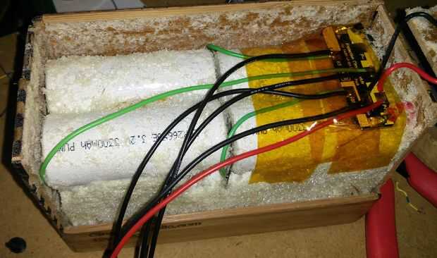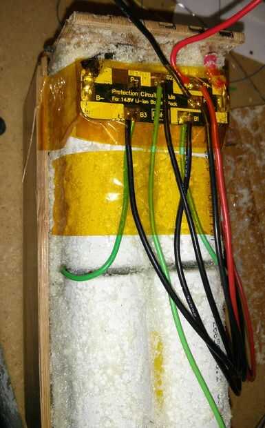 Cable hasta el conector de equilibrado al mismo tiempo como el que puse al monitor de baterías. Se corta el alambre a la terminal de salida de la batería, y un nuevo cable es la soldadura de la PCM al terminal de salida (P + y P-conexión)
