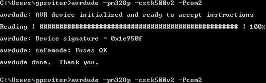 "avrdude - pm328p - cstk500v2-Pcom2"