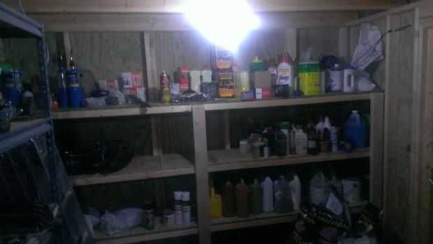 Tomé unas fotos esta noche. Las luces no son tan brillantes como mi teléfono celular cámara les hace ser pero hay un montón de luz de las dos luces fluorescentes para ver todo el interior de almacenamiento.