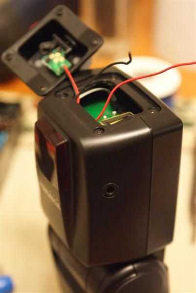 En un flash manual como el YN460ii, estos son los dos pernos conectados dentro del conector de la zapata. Todo lo que tienes que hacer es sacarlos corta para activar el flash! Esto es lo que el controlador o cualquier dispositivo que se conecta el flash a tendrá que hacer para que lo desencadenan. Puede utilizar un opto-acoplador o un relé para accionar cualquier tipo de dispositivo.